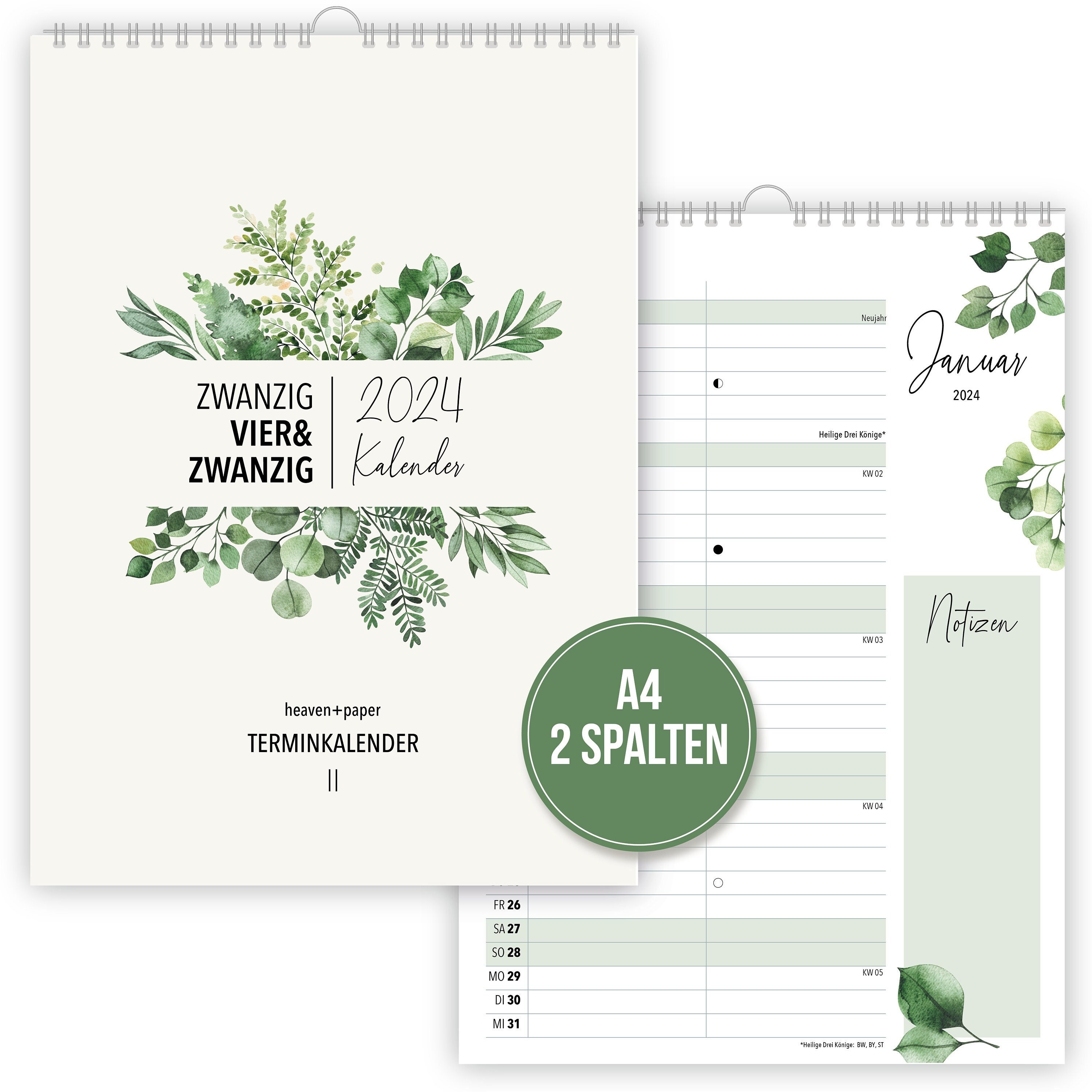 A4 / 2 Spalten Wandkalender GREEN mit 2 Spalten für 2024 Etsy