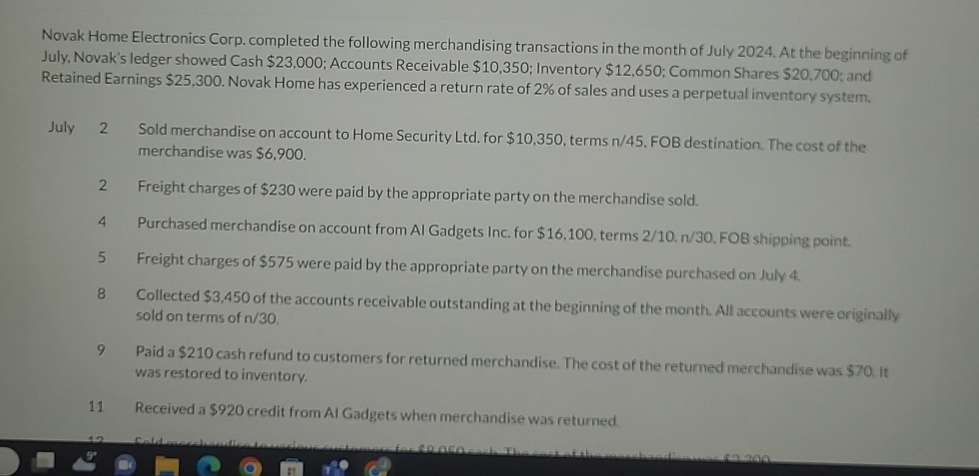 Solved Pina Colada Home Electronics Corp. completed the | Chegg.com